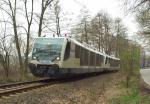 RegioSprinter der Dürener Kreisbahn (DKB) auf der Rurtalbahn als DNR 81484 auf der Fahrt von Düren nach Heimbach(Eifel), kurz nach dem Halt in Obermaubach. Datum: 30. März 2002