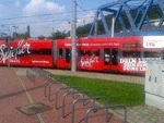 Saarbahn Tw 1008 "LBS Spießer" am Römerkastell. Juni 2017. Photo by M.Koblischka |