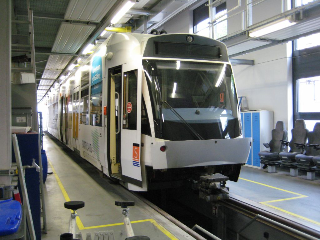 Saarbahn Tw 1009 "Saarland Bildung" in der Werkstätte Brebach. Mai 2016.