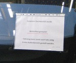 Saarbahn Tw 1016 in der Werkstatt Brebach. Mai 2016. Wichtige Information zum Abstellen -- speziell bei dem miesen Wetter im Mai! Photo by M.Koblischka |