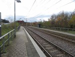 Saarbahn Haltestelle Heinrichshaus. November 2023. Blick von der Fußgänger- und Radfahrerbrücke Richtung Siedlerheim. Die Strecke führt entlang der A1 und dem Wald. Photo by M.Koblischka |