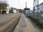 Saarbahn Haltestelle Riegelsberg-Rathaus. März 2015. Gleis Richtung Saarbrücken. Auch hier ist wieder die Steigung auffällig. Photo by M.Koblischka (koblischka@t-online.de) |