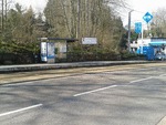 Saarbahn Haltestelle Riegelsberg-Wolfskaulstrasse. März 2015. Der untere Fahrkartenautomat und das zweite Wartedach. Photo by M.Koblischka (koblischka@t-online.de) |