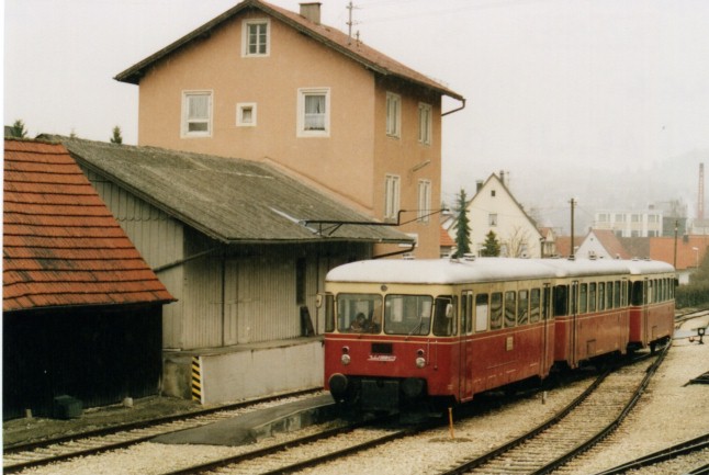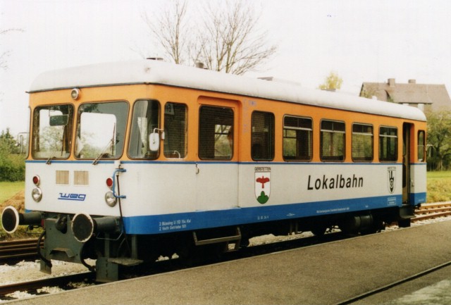 WEG: Railcar 05 at Amstetten, awaiting departure for Gerstetten on 27 Oct 1995.