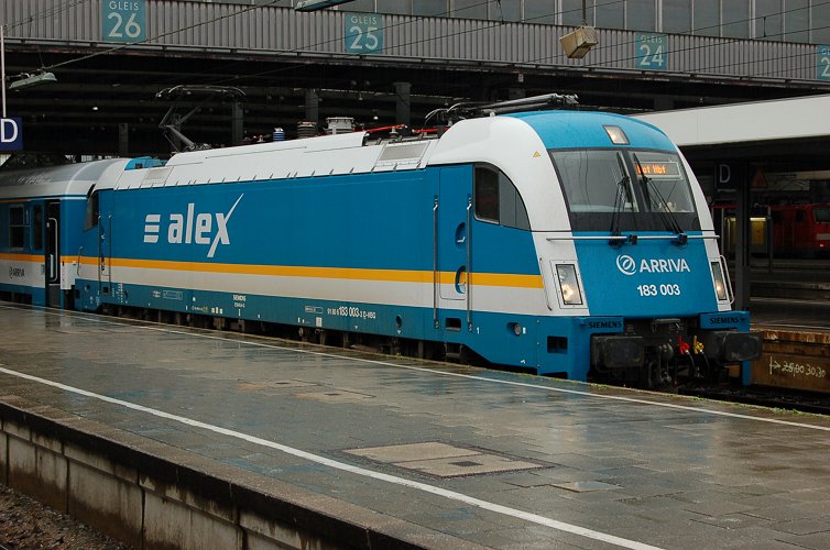 ARRIVA-Vogtlandbahn 183 003 mit dem ALX37978 in München Hbf.(3.9.09)