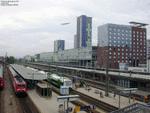 Freiburg Hauptbahnhof on Friday April 23rd, 2004 as seen from the tram stop which is located on a bridge crossing the rail lines.