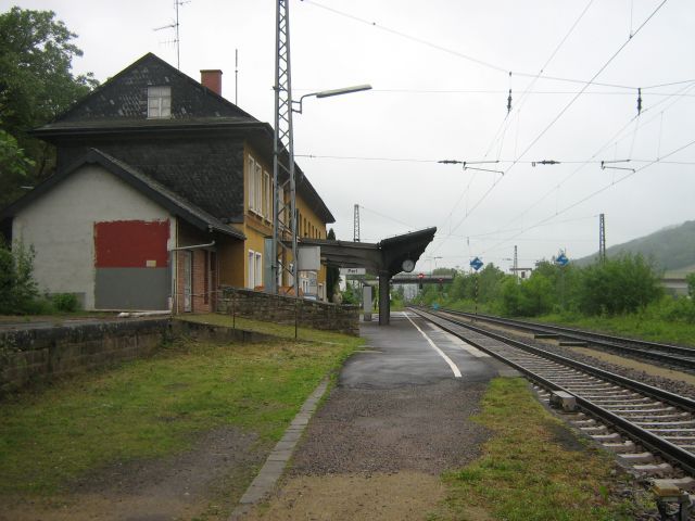 Perl ist der letzte deutsche Bahnhof an der Mosel. Die Aufnahme wurde von Schengen (L) aus gemacht.
