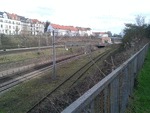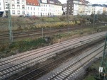 Saarbrücken-Malstatt Frankenstrasse. Februar 2014. Blick Richtung Hauptbahnhof. Das erste Gleis ist das Gleis der Saarbahn, das im Moment betrieblich nicht genutzt wird. Die nächsten 4 Gleise dienen dem Fernverkehr, die inneren Gleise dem Regionalverkehr und dem Güterverkehr. Photo by M. Koblischka |