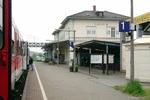 Sinsheim (Elsenz) Hauptbahnhof Station building and elevator of Sinsheim (Elsenz) Hbf seen from the footbridge. The station is served hourly by the S 5 Heidelberg–Meckenheim–Sinsheim–Steinsfurt–Eppingen and every two hours by RE trains from Mannheim to Heilbronn. In December 2014 S-Bahn trains of the Stadtbahn Heilbronn will reach the station. Photo taken Sunday 17 August 2014. Photo: Steffen Mokosch (Steffen.Mokosch@web.de) |