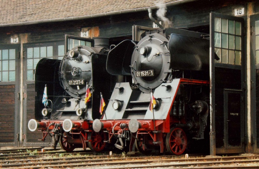 Steam locomotives 01 2137 and 01 1531 in "Haus 3" of Bw Würzburg