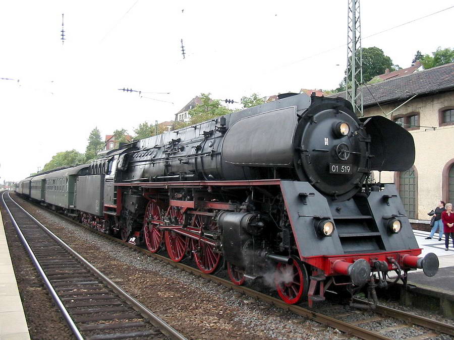 Dampflok 01 519 Dampflokomotive 01 519 ist am 05. Juni 2004 gerade mit einem Sonderzug in Neustadt (Weinstraße) eingetroffen. Anlaß war das Bahnhofsfest 10 Jahre Rheinland-Pfalz-Takt, 20 Jahre Kuckucksbähnel.