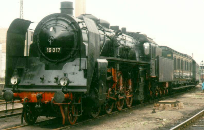 DR 19 017 (ex K.Sächs.Sts.E.B. XX HV) with an old express train.