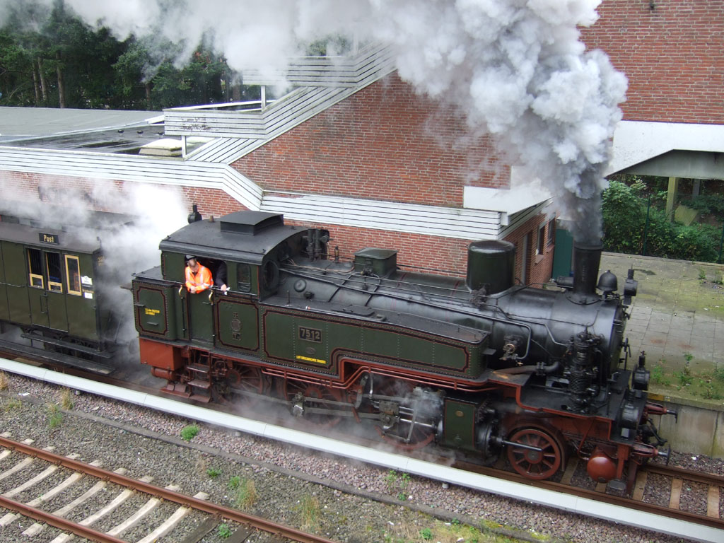 KPEV 7512 with its Prussian branch-line train entered Wuppertal-Oberbarmen on 30th of August 2008. ...und natürlich muß sich der Herr Angler (richtiger Name bekannt) vom örtlichen Käseblatt mit seiner Kamera aus dem ersten Wagen mitten ins Bild hängen. Daß so etwas bei Volksbespassungen im 21. Jahrhundert leider unvermeidlich zu sein scheint, ist die eine Seite; daß sich auch Professionelle solch pöbelhafter Flegeleien befleissigen ist allerdings mehr als ärgerlich! Photo ©Arnim v. Herff |