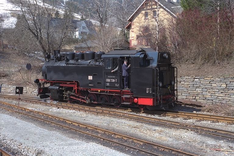 DB AG narrow gauge steam locomotive 099 738-7 and a second locomotive of