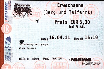Nerobergbahn Wiesbaden Roundtrip ticket 16.4.2011 |