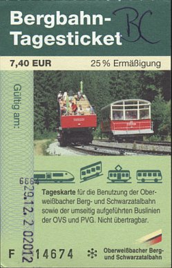 Tageskarte Oberweissbacher Berg- und Schwarzatalbahn 29.12.2012 |