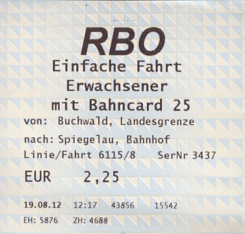 RBO ticket Buchwald Grenze - Spiegelau 19.8.2012 |