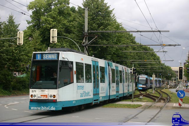 mobiel 571 als 1 am 23.07.2005 in Bielefeld, (H) Landgericht (C) 2005 Werner Brückner Home: http://bahn-in-bielefeld.de.vu/, Mail: wb-info@gmx.net |