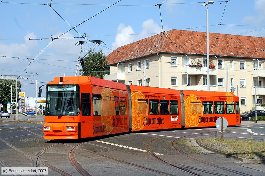 Braunschweig - Straßenbahn - 9561 Triebwagen 9561 auf Linie 2 am 24. August 2007 an der Haltestelle Gesundheitsamt.