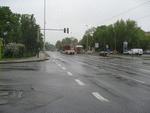 Strassenbahn tram heading in a northerly direction along Thiemstrasse, Cottbus, on a cold and rainy 19. May 2010.