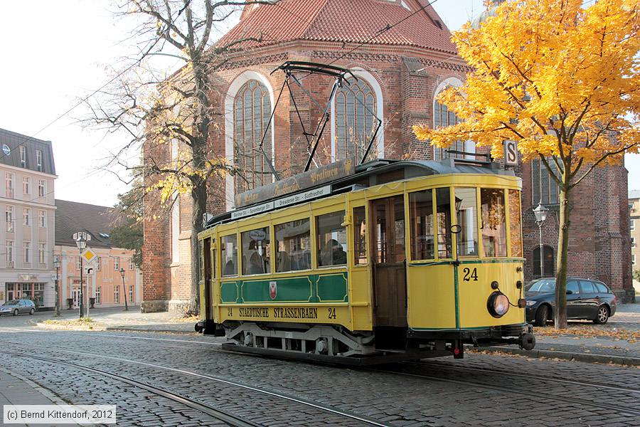 Straßenbahn Cottbus - 24 Triebwagen 24 nahe der Haltestelle Altmarkt, aufgenommen am 21. Oktober 2012.