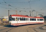Dortmund GT8-tramcar (built 1974 by Duewag) at terminal Dorstfeld on 20.4.96. Photo and scan by Nase. |
