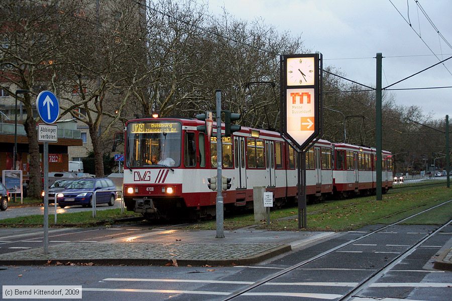 Stadtbahn Duisburg - 4708 Triebwagen 4708 auf Linie U79 in Düsseldorf an der Haltestelle Messe Ost / Stockumer Kirchstraße am 24. November 2009.