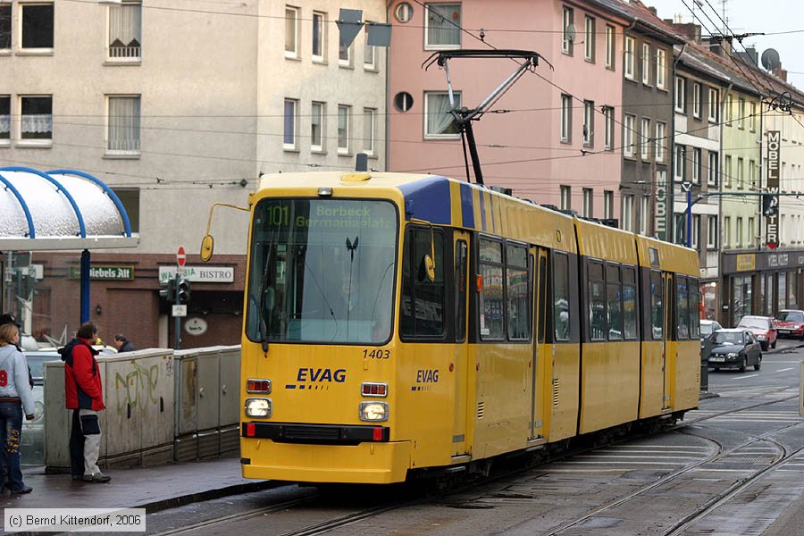 Straßenbahn Essen - 1403 Triebwagen 1403, aufgenommen auf Linie 101 am 11. März 2006 an der Haltestelle Helenenstraße.