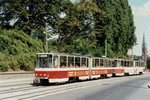 | Bügel runter und schwungvoll durch - so hält es Tw 208 unter der Bahnbrücke der Bahnstrecke Frankfurt (Oder) - Bad Freienwalde, um den Kießlingplatz anzusteuern. Dr. Sternol, Eckart (Foto), Dr.Sternol@t-online.de |