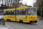 Straßenbahn Görlitz - 319 Triebwagen 311 (vorn am Zug, links am Bildrand) mit Triebwagen 319 auf Linie 3 nach Königshufen - Am Marktkauf an der Unterführung beim Bahnhof, aufgenommen am 24. Februar 2016.