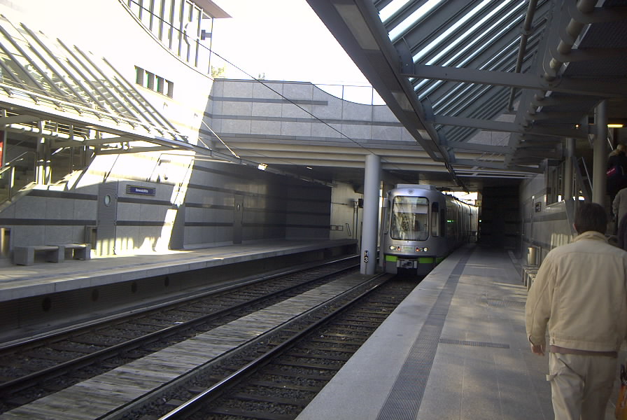 Waiting area for the light rail in front of the station Expo/Ost (Messe/Ost) seen from the netherlands pavillon at Expo 2000 Hannover. Aug 2000. Photo by Juergen Goetzke (JGoetzke@gmx.de) |