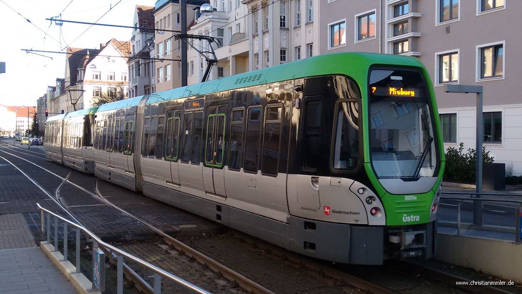 Stadtbahn Hannover 3025 - Typ 3000 Linie 7 -> Misburg Haltestelle Lortzingstraße 02.Dezember 2016 Photo: Christian Immler - fotos@christianimmler.de - www.christianimmler.de |
