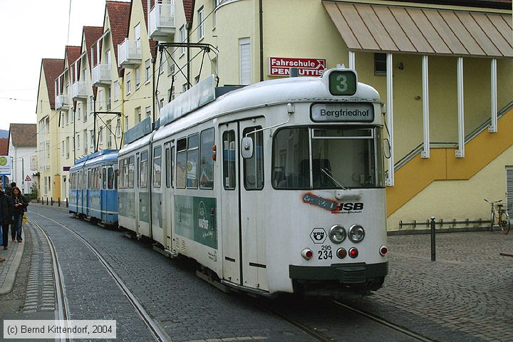 Heidelberg HSB 295 (234) Straßenbahnzug 295 in Leimen Kurpfalz-Zentrum am 27. März 2004.