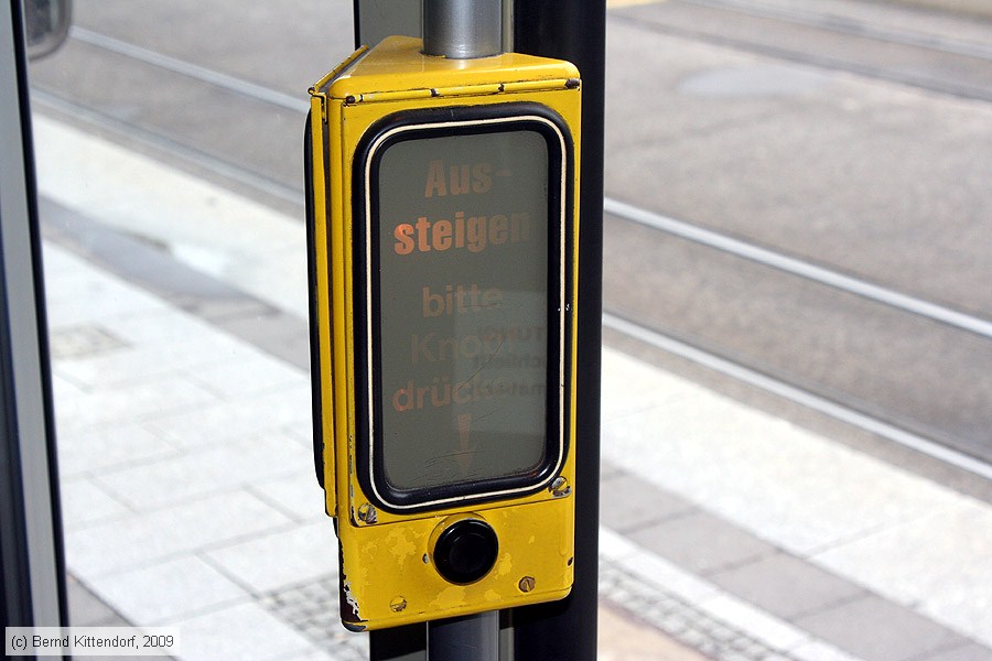 Straßenbahn Heidelberg - 204 - Innenansicht Haltewunsch-Drücker für Fahrgäste im Triebwagen 204, aufgenommen am 07. Juni 2009.