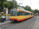 Stadtbahn Karlsruhe - 555 Triebwagen 555 auf Linie S2 am 25. Mai 2008 an der Haltestelle Mühlburger Tor.