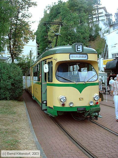 AVG 121 Triebwagen 121 beim Bahnhofsfest in Bad Herrenalb. (23. August 2003)