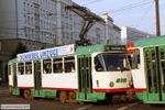 Straßenbahn Magdeburg - 1239 Triebwagen 1239 auf Linie 8, aufgenommen beim Hauptbahnhof am 28. Juli 1990.