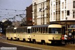 Straßenbahn Magdeburg - 2026 Beiwagen 2026 auf Linie 3, aufgenommen vor dem Hauptbahnhof am 28. Juli 1990.