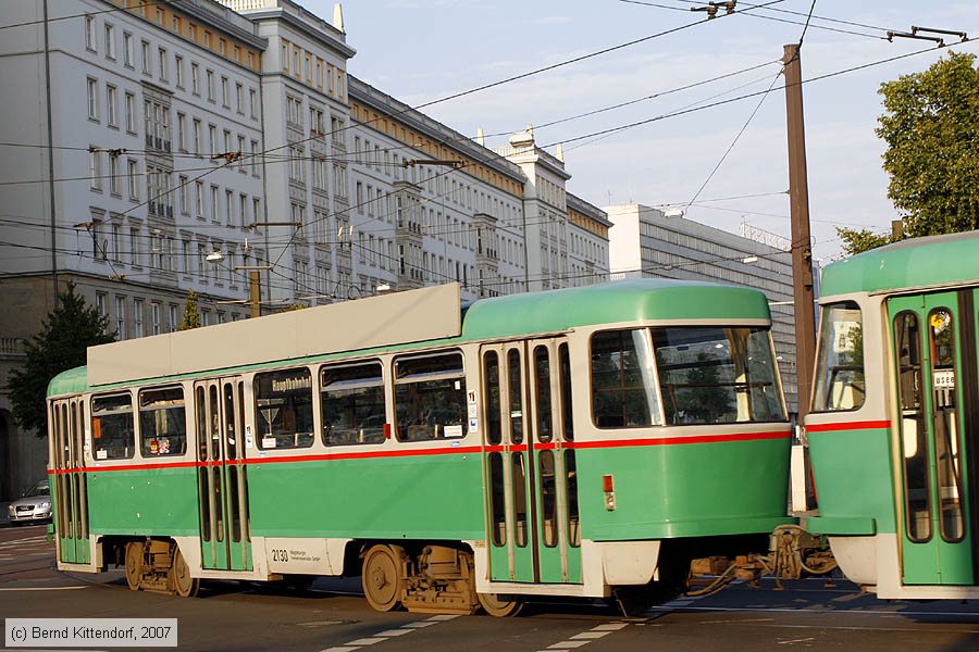Straßenbahn Magdeburg - 2130 Beiwagen 2130 beim Abbiegen von der Ernst-Reuter-Allee in die Otto-von-Guericke-Straße am 04. August 2007.