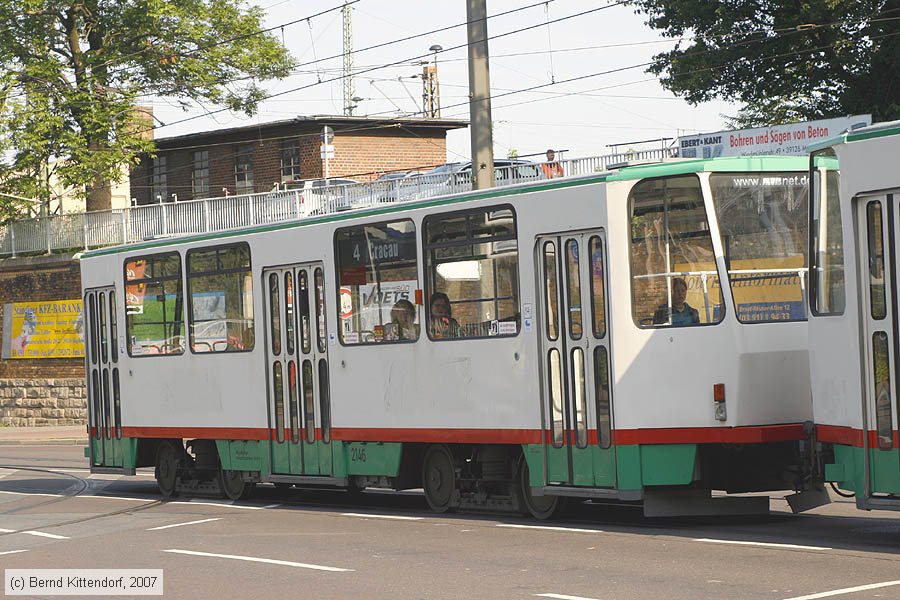 Straßenbahn Magdeburg - 2146 Beiwagen 2146 auf Linie 4 bei der Haltestelle City Carré - Hauptbahnhof am 04. August 2007.