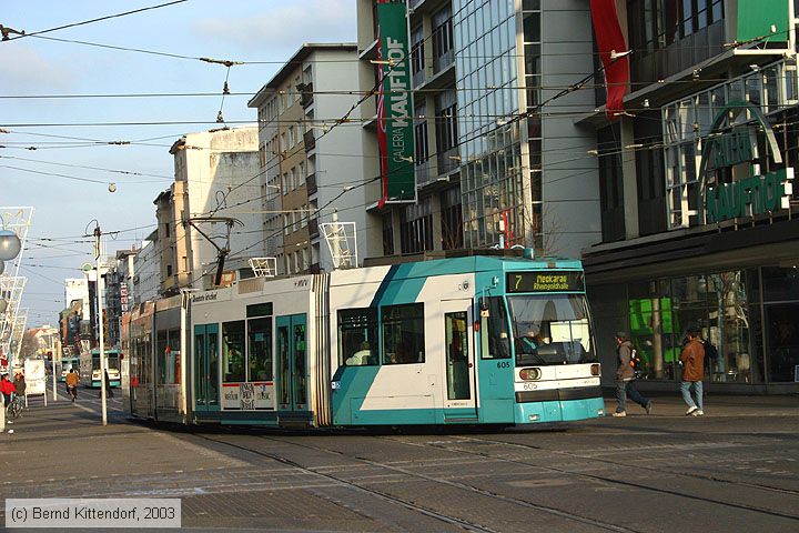 Mannheim MVG 605 Triebwagen 605 unterwegs als Linie 7 am Paradeplatz. (31. Dezember 2003)