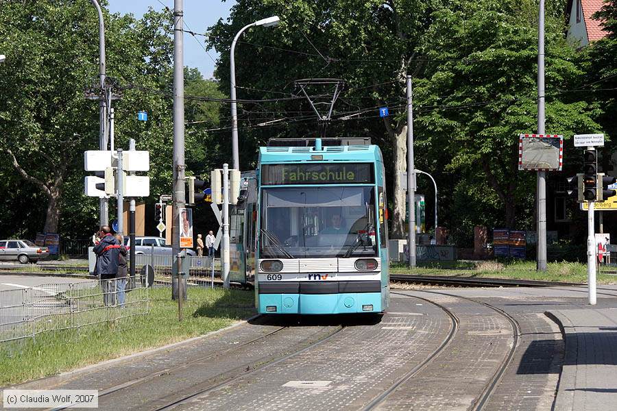 Straßenbahn Mannheim - 609 Triebwagen 609 am 02. Juli 2008 auf Linie 4 in Ludwigshafen Oggersheim.