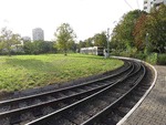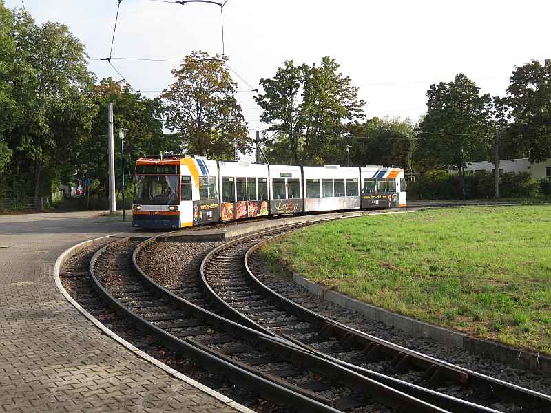 rnv Haltestelle Vogelstang (Linie 7). Oktober 2023. Endschleife mit Zusatzbahnsteig. Photo by M.Koblischka |