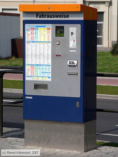 Straßenbahn Mannheim - Fahrscheinautomat Fahrkartenautomat an der Haltestelle Universitätsklinikum am 01. April 2007.