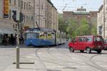 Munich P3 Tram. Tram 2005 with a westbound 19 service to Pasing S-Bahn station enters Wörthstraße near the Ostbahnhof on Tuesday April 27th, 2004.