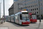 Straßenbahn Nürnberg - 1123 Triebwagen 1123 auf Linie 8 an der Haltestelle Hauptbahnhof am 11. Mai 2008.