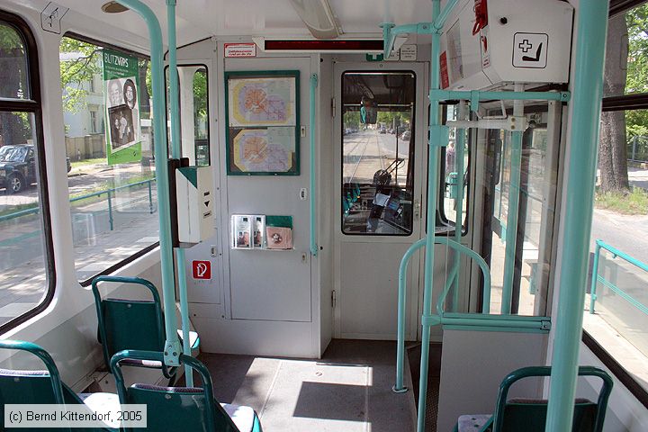 Straßenbahn Potsdam - 143 - Innenansicht Fahrgastraum des Triebwagens 143, aufgenommen am 21. Mai 2005.