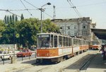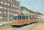 Tramways 074+075 on line 6, Hauptbahnhof, 31 July 1990.