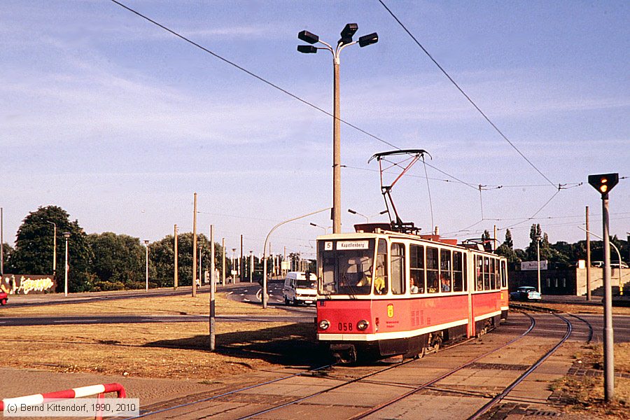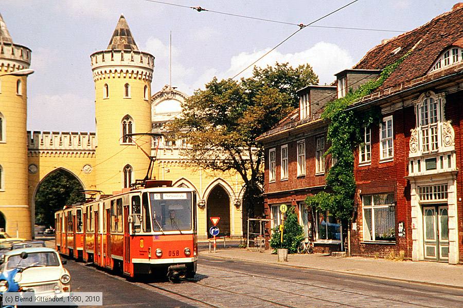 Straßenbahn Potsdam - 058 Triebwagen 058 auf Linie 5, aufgenommen am 01. August 1990.