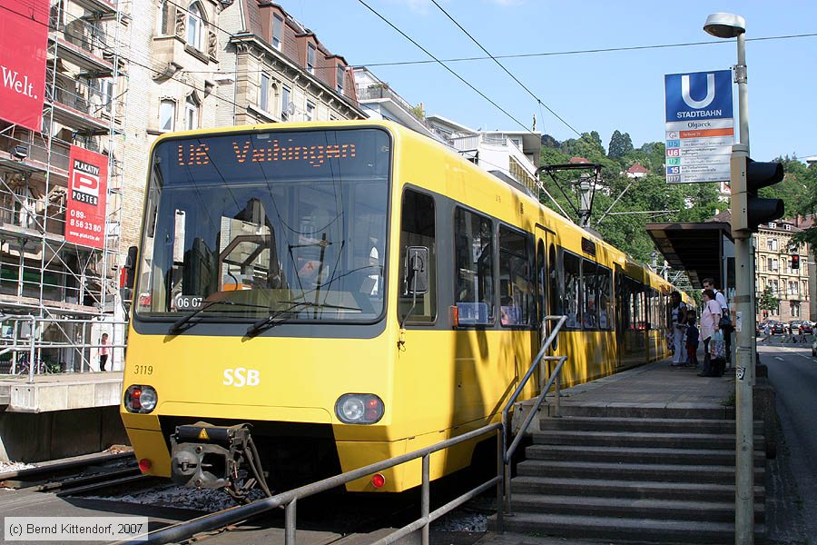 Stuttgart - Stadtbahn - 3119 Triebwagen 3119 am 08. Juni 2007 auf Linie U6 an der Haltestelle Olgaeck.